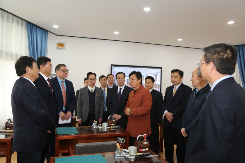上午11时40分,专家组组长、陕西省高职院校诊改工作专家委员会委员、长安大学原副校长翟振东教授,专家组副组长、陕西省高职院校诊改工作专家委员会委员、陕西交通职业技术学院党委书记杨云峰教授,陕西工业职业技术学院党委副书记、副院长刘永亮教授,杨凌职业技术学院副院长张永良教授,西安铁路职业技术学院教务处处长腾勇教授,延安职业技术学院高职教育研究所主任刘建成教授,陕西铁路工程职业技术学院信息化建设与管理中心主任王传合工程师,专家组秘书、杨凌职业技术学院质量办主任钱拴提教授等专家组成员在听取了学院集中汇报会后,在学院党委书记张志华、院长程书强的陪同下,兴致勃勃参观了贺兴文大师工作室。