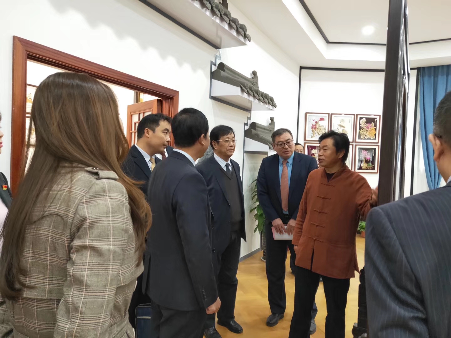 国家级非遗传承人、中国工艺美术大师、全国劳模、人文艺术学院院长贺兴文详细地为专家组做了介绍,包括麦秆画的历史渊源、品种分类、制作工艺、工艺流程社会声誉以及获得荣誉等,贺大师还耐心地回答了专家们的问题,专家们对大师工作室的设计、布置的高大尚给予了赞许,对麦秆画化腐朽为神奇的功能给予了高度评价,最后大家还欣然合影留念。