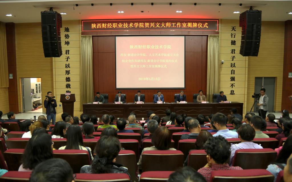 5月13日下午,我院在学术报告厅举办人文艺术学院成立大会和贺兴文大师工作室揭牌仪式。中国工艺美术学会常务理事、国家工艺美术大师、陕西省工艺美术学会副会长兼秘书长贺兴文,陕西二级工艺美术大师王玉芳,陕西工艺美术大师陈美玲,陕西省教育书法研究会副会长曹书生,陕西省书协会员吕九鹏和学院领导班子成员出席,学院全体教职员工参加。副院长范忠主持会议。