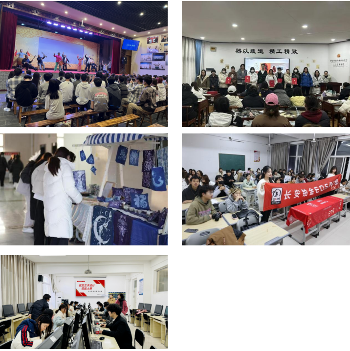 本专业以“实践赋能、视野拓维、能力进阶”为核心,构建“竞赛+项目+研学+展演”四维活动体系,深度融合专业育人与行业需求,培养兼具创意、实战能力与市场适配力的复合型设计人才。专业通过高水平赛事牵引、真实项目落地、行业研学交流及成果展演等多元形式,激活创意实践活力,实现课堂学习与实践应用无缝衔接;依托校内国际设计前沿讲座、校外陕西本土文化研学及国际院校交流平台,拓宽学生全球化设计视野;全链条培养核心能力,强化手绘、数字建模等硬技能与主流设计工具应用,通过模拟商业提案、团队攻坚塑造软能力,融入交互设计、新媒体视觉设计等新兴内容,确保所学与行业岗位同频,毕业生可快速胜任品牌设计、视觉策划、文创开发等岗位,成长为契合市场需求的创新型设计人才。