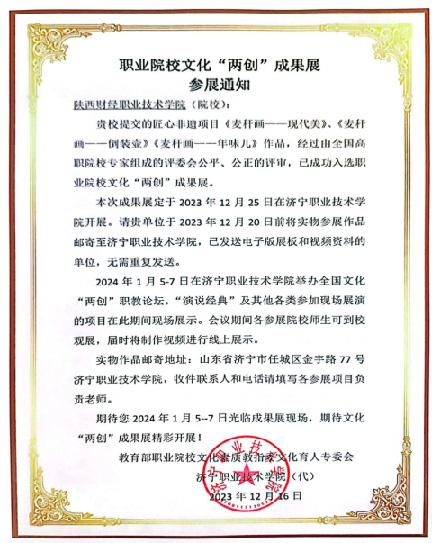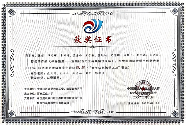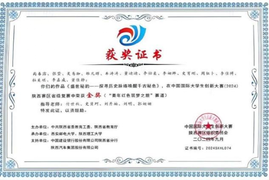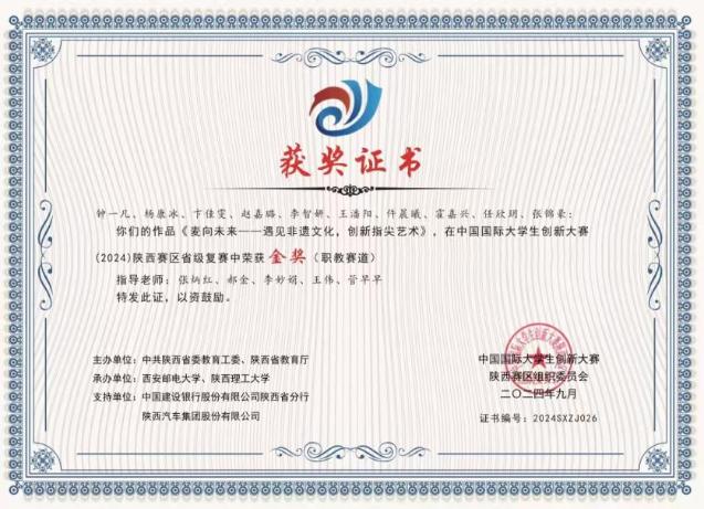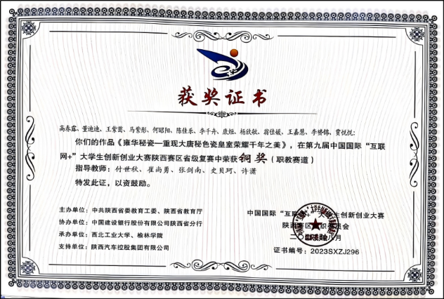 (3)“赛教融合、成果丰硕”的培养成效: 推行项目化、工作室制教学,将真实项目和竞赛课题融入课堂。学生近年屡获中国国际大学生创新大赛省级金奖、陕西省大学生创业计划竞赛银奖、艺术设计类省级技能大赛银奖等高级别奖项,作品入选全国职业院校文化“两创”成果展。