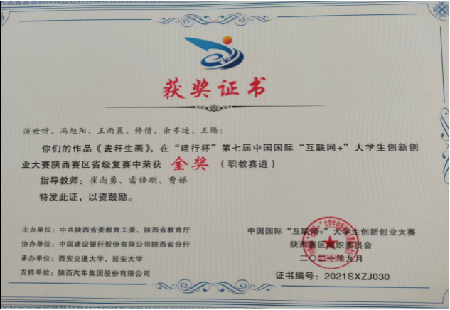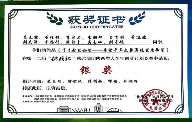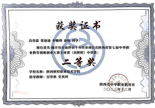 陕西省第七届中华职业教育创新创业大赛二等奖