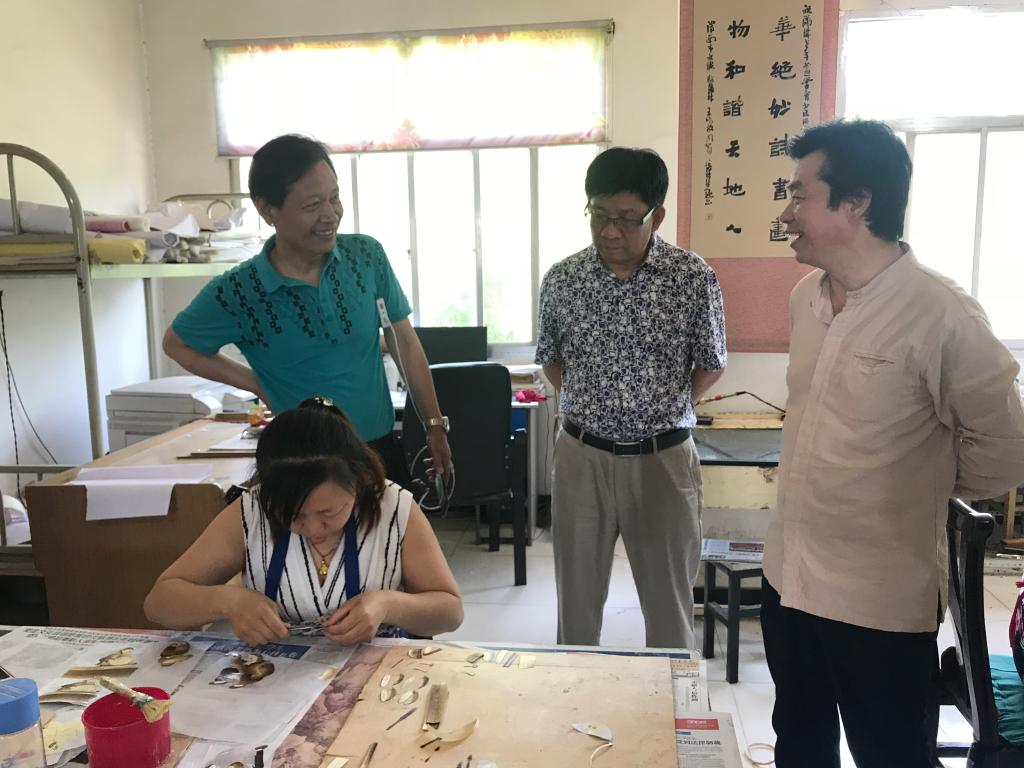 5月24日上午,为了把贺兴文大师工作室设计的更加合理、科学,有效,有特色 ,人文艺术学院执行院长崔斗,西安至相生活艺术馆李总分别从咸阳和西安奔赴陕西蒲城贺兴文麦秆画基地参观学习,进一步听取贺院长对大师工作室设计的意见和建议。