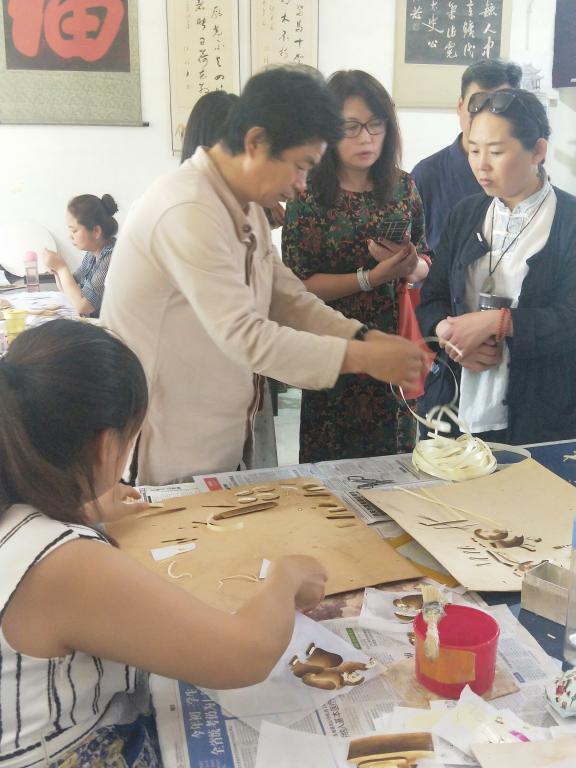 贺院长亲自为大家介绍了麦秆画制作的工艺流程,引领大家参观了麦秆画制作室、作品加工室和作品陈列室。