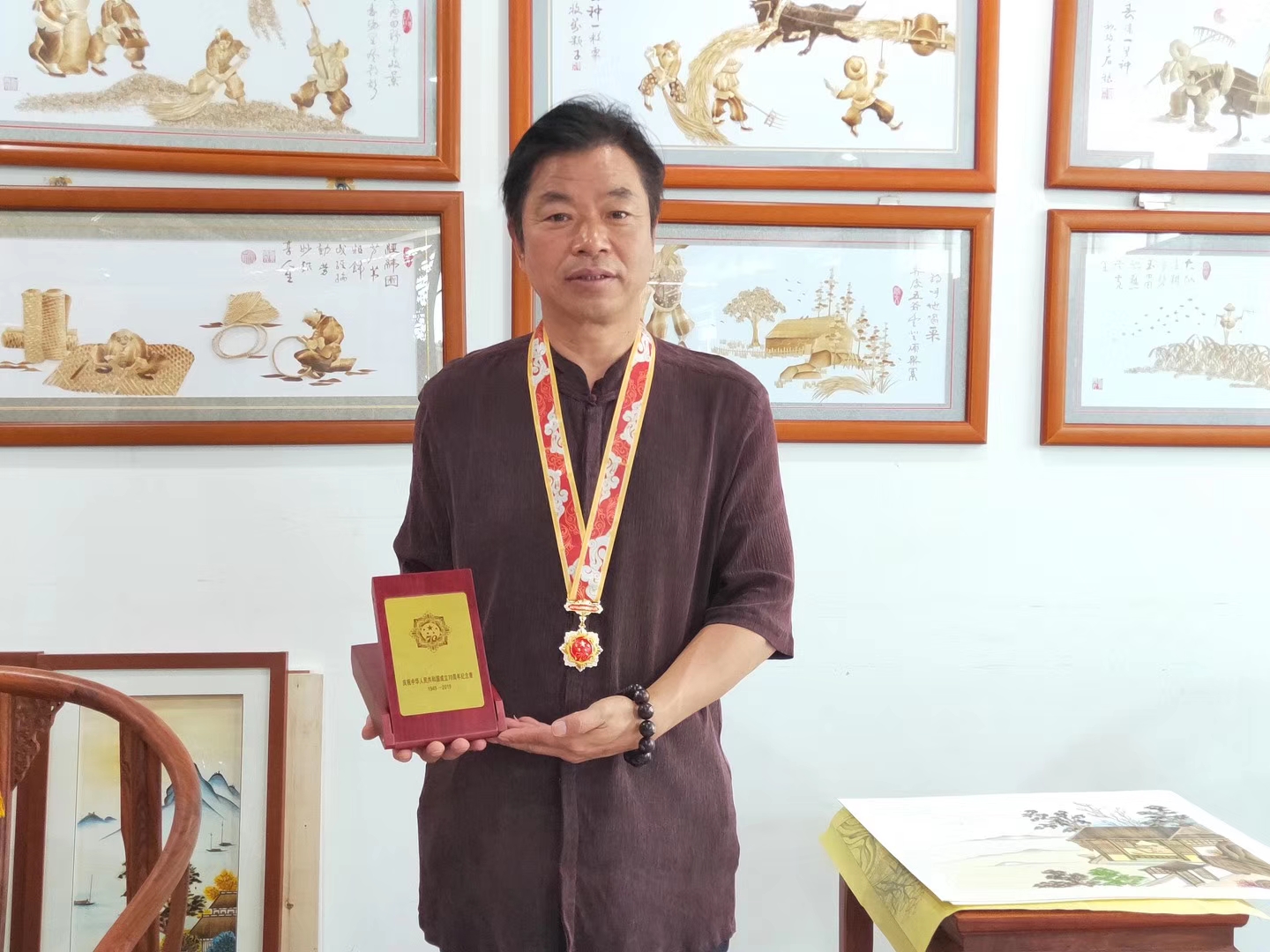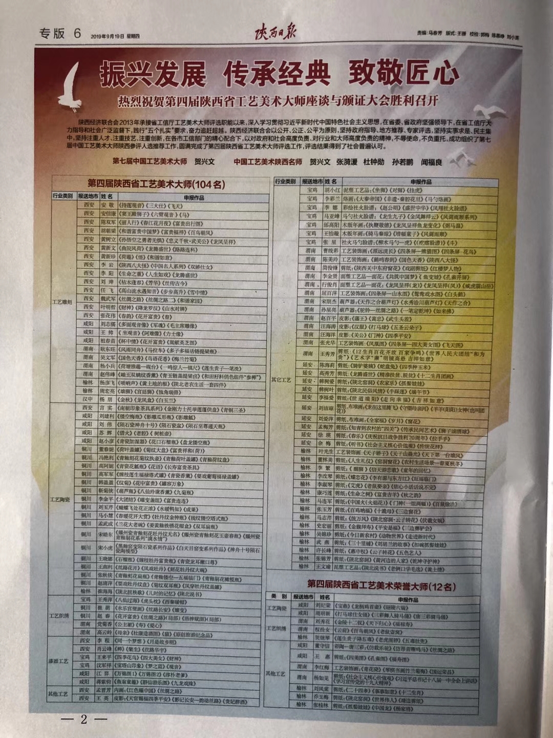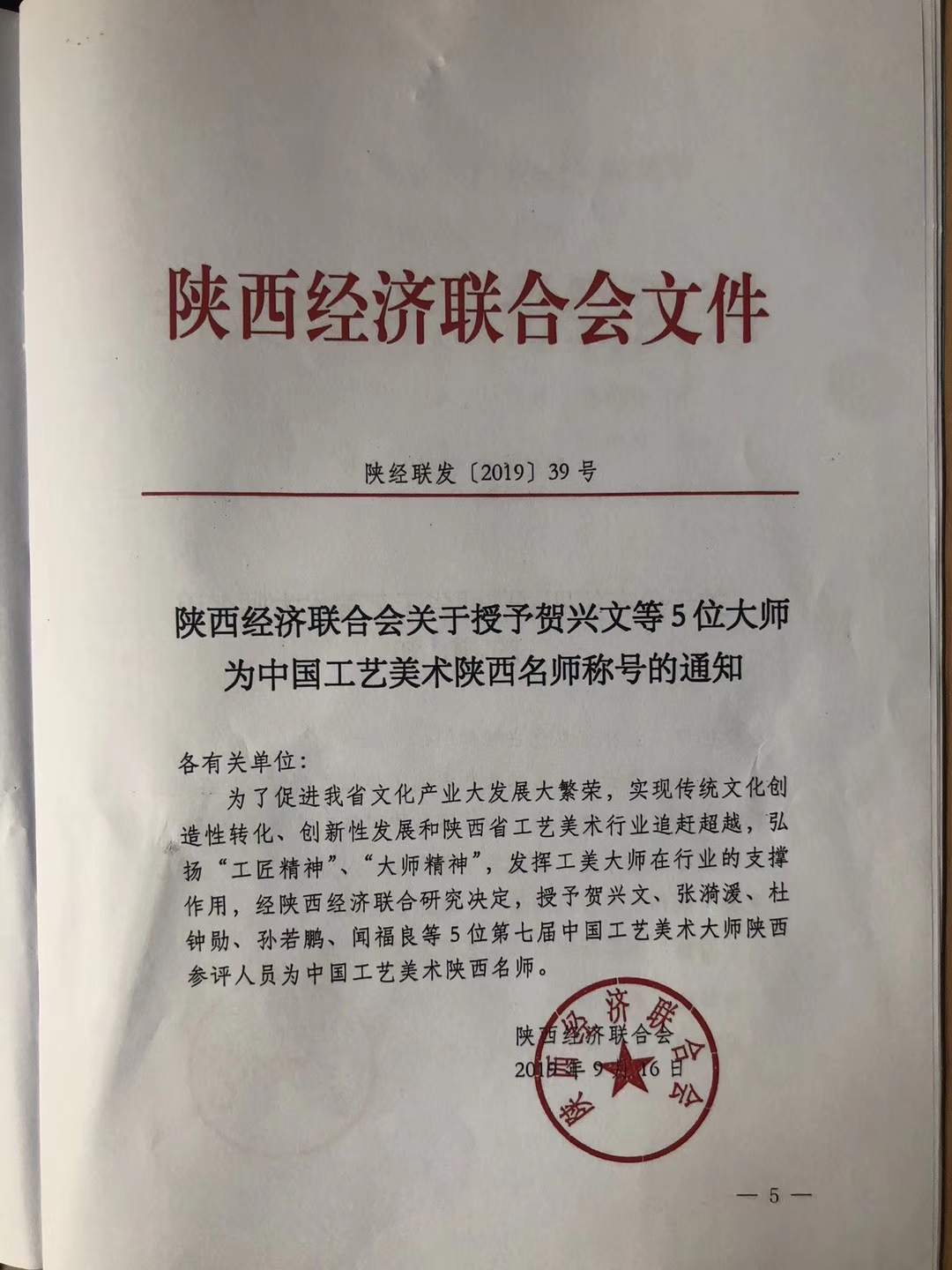 今天,人文艺术学院院长贺兴文获得两项殊荣! 1、获得中共中央 、国务院 、中央军委,庆祝中华人民共和国建国70周年纪念勋章。 2、在陕西经济联合会第四届陕西省工艺美术大师授牌仪式上,被授予中国工艺美术陕西名师称号!