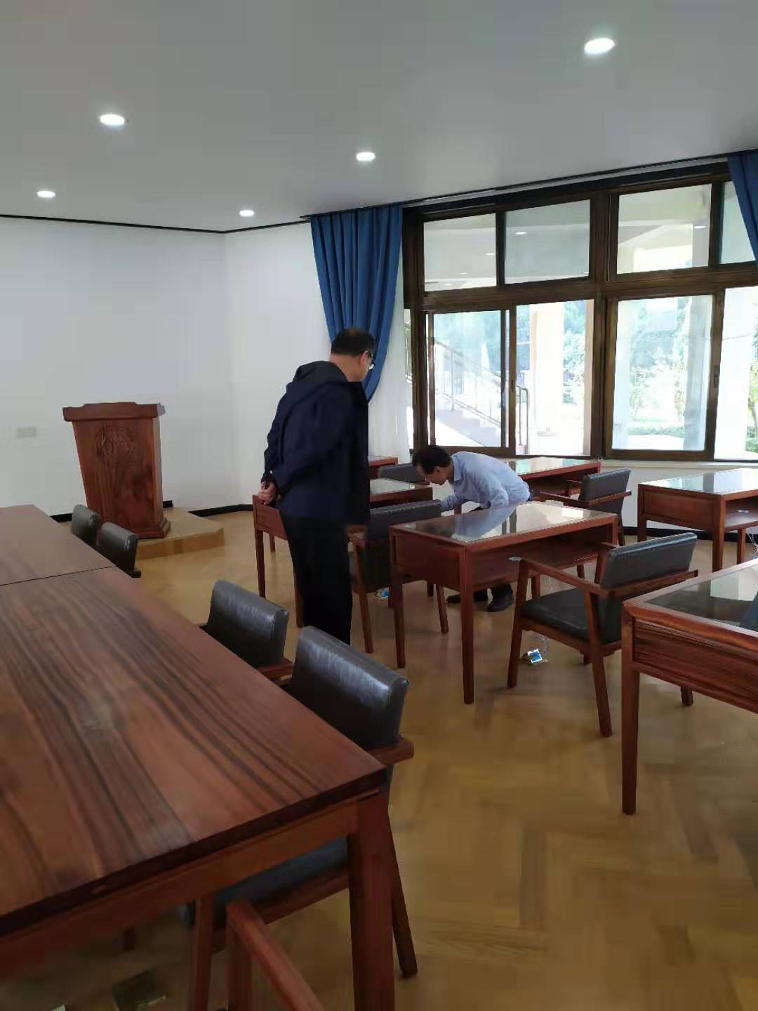 在即将迎来新中国成立70周年大典之日,人文艺术学院大师工作室及手工教学区工程也完美收官,这将是我们献给新中国成立70周年的一份特别的贺礼。9月30日上午,学院院长程书强专门莅临大师工作室及手工教学区,视察了该项目完工情况,程院长对装修工程的质量水准和家具制作的精雕细刻给予了充分肯定,同时也提出了一些合理化建议,后期人文艺术学院将按照程院长指示精神,再继续进行后期的改动和调整,以期项目日臻完美。