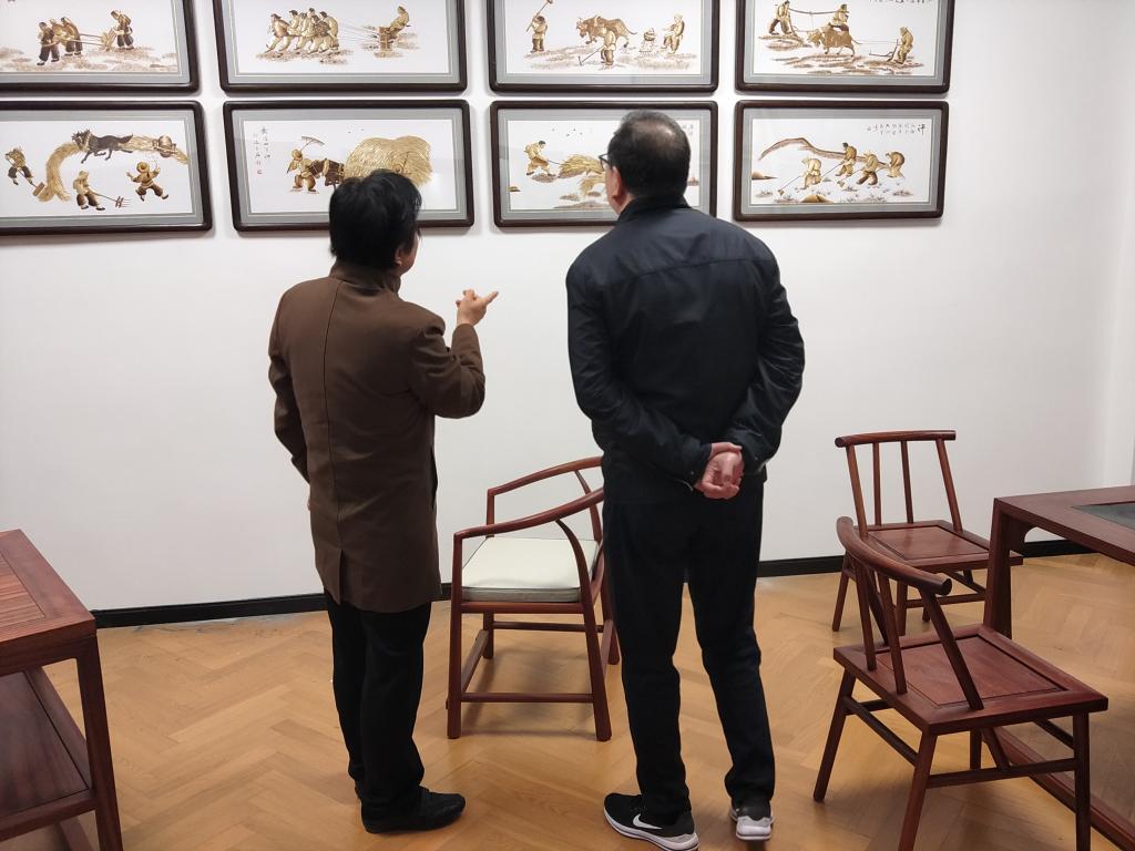 11月3日,在学院领导的大力支持下,在中国工艺美术大师贺兴文带领的团队倾情而认真细致的工作下,人文艺术学院大师工作室布展工作终于顺利完工。布置完工的大师工作室,将展出中国非遗项目——麦秆画、瓷器麦秆画以及座屏麦秆画等近50副,大师经典作品《二十四孝》、《农耕图》、《春夏秋冬》、《岁寒四友》以及最近在陕西艺博会上获奖的庆祝建国70年获奖作品也在其列。