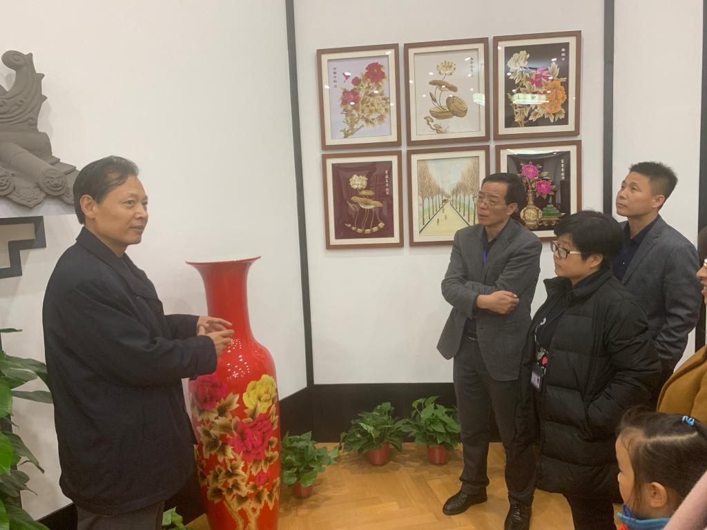 首先,人文艺术学院的党员在党支部书记崔斗的带领下以“文化传承,打造亮点”为题,开展主题党日活动。参观了刚刚建成的人文艺术学院院长贺兴文大师工作室。一幅幅精美绝伦的手工艺麦杆画,凝聚了大师们的心血,彰显了他们追求卓越、精益求精的品质精神,也感动了全体参观学习的党员。