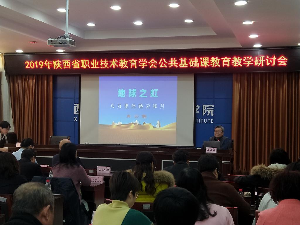 上午,先由西安航空职业技术学院校长赵居礼教授致欢迎词。随后著名文化学者、陕西省文联副主席肖云儒先生做了《地球之虹》主题报告。肖云儒先生围绕自己近年来三次丝路万里行的切身感受进行了讲述。他认为,丝路不仅启动了世界文明第一个轴心时代,奠定了世界最早的文明版块——以欧亚为中心的大陆文明,同时奠定了儒释道三足鼎立的中华文明的构成,包括中国的造纸术与印刷术等也是通过丝路传播,催发了欧洲文艺复兴和资本主义诞生,从而改变了欧洲和世界的命运和格局。通过这三次丝路之行,肖云儒教授说他深深地感受到“三个三”,即“三热”、“三知”、“三心”。其中,“三热”是指各国纷说的“丝路热乎”、所到各地的“丝路人热情”以及各地的“丝路经济热销”;“三知”指中国好、世界小及千年丝路情未了;“三心”则指政府很上心、企业很热心、老百姓很关心。肖先生的精辟幽默引起大家阵阵掌声。讲座结尾时,肖云儒教授再次强调"一带一路"是西部发展、中国发展和世界发展的需要。接着,中国延安干部学院机关党委委员、机关纪委书记王纪刚为大家做了一场题为《延安时期的文化建设》的主题报告,王教授引经据典、图文并茂,用详尽的史实介绍了延安时期的我党的文化建设以及当代文化建设的方向和意义,引起大家的深刻思考。