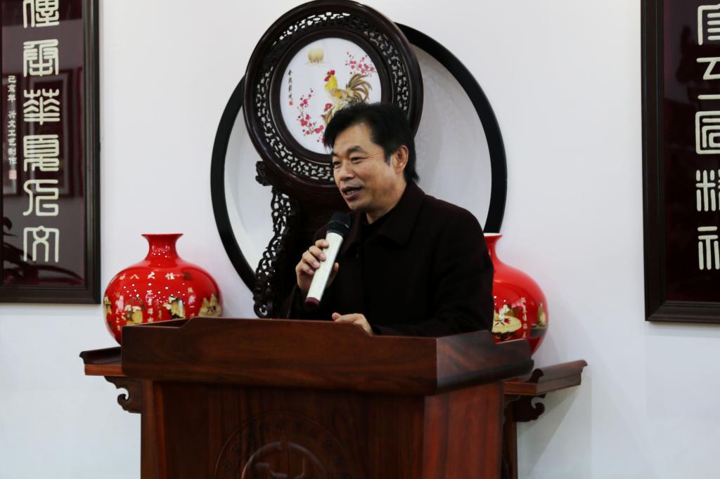 我院人文艺术学院院长,中国工艺美术大师贺兴文先生首先感谢了学院领导对中国传统文化传承的重视,随后从“民间艺术”角度解读了中国传统文化“民间艺术”是民族的历史,是民族的精神。要挖掘,传承,保护中国传统文化,就需要在非物质文化进校园的基础上,以项目模式带动“产、学、研、教”的发展。让“工匠精神”渗透到高等职业教育中。提升学生的职业敬业精神。通过在校园中建立工艺美术大师工作室,培养学生的动手实操能力。