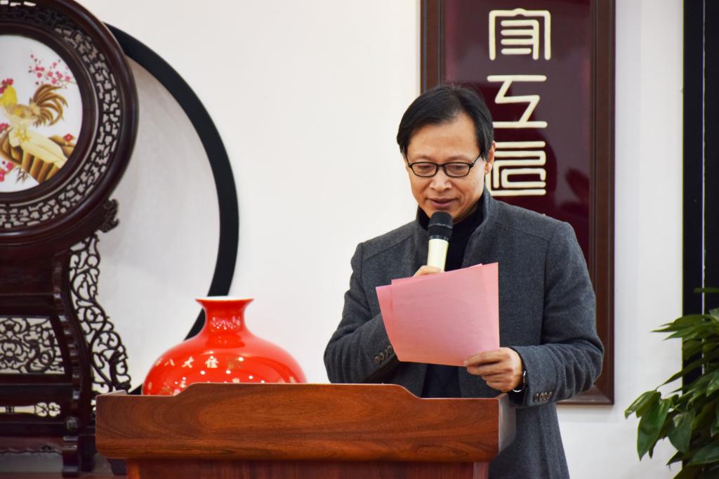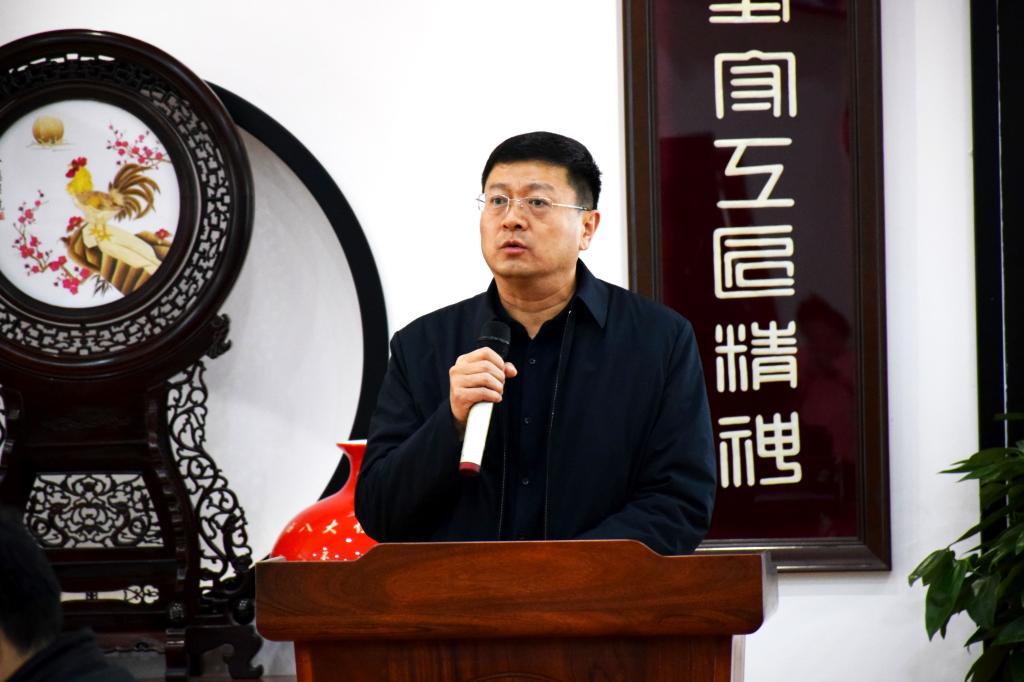 在揭牌仪式之前,陕西财经职业技术学院党委书记张志华致欢迎词。首先张志华书记代表学院党政领导对各位嘉宾共同莅临陕西财经职业技术学院,共商发展大事表示衷心的感谢!张书记介绍了学院的基本概况,介绍了在今年5月份,改制原基础部成立了人文艺术学院,聘请国家工艺美术大师贺兴文担任院长,并建立了“贺兴文工作室”,贺院长上任后完成了卓有成效的一系列工作,拓宽了学院的覆盖领域,提升了学院的社会声誉。张书记讲到,当前职业教育发展受到了前所未有的重视,学院将以此次揭牌为契机,加大双方合作融合,在共建“非遗大师团队”,“非遗+文化旅游高质量发展社会培训”等方面形成战略合作计划。依托学校优势学科,以:“产、学研、教”深度融合为引导,为非物质文化遗产在促进中华传统文化创造性转化,创新性发展方面做出新的贡献。