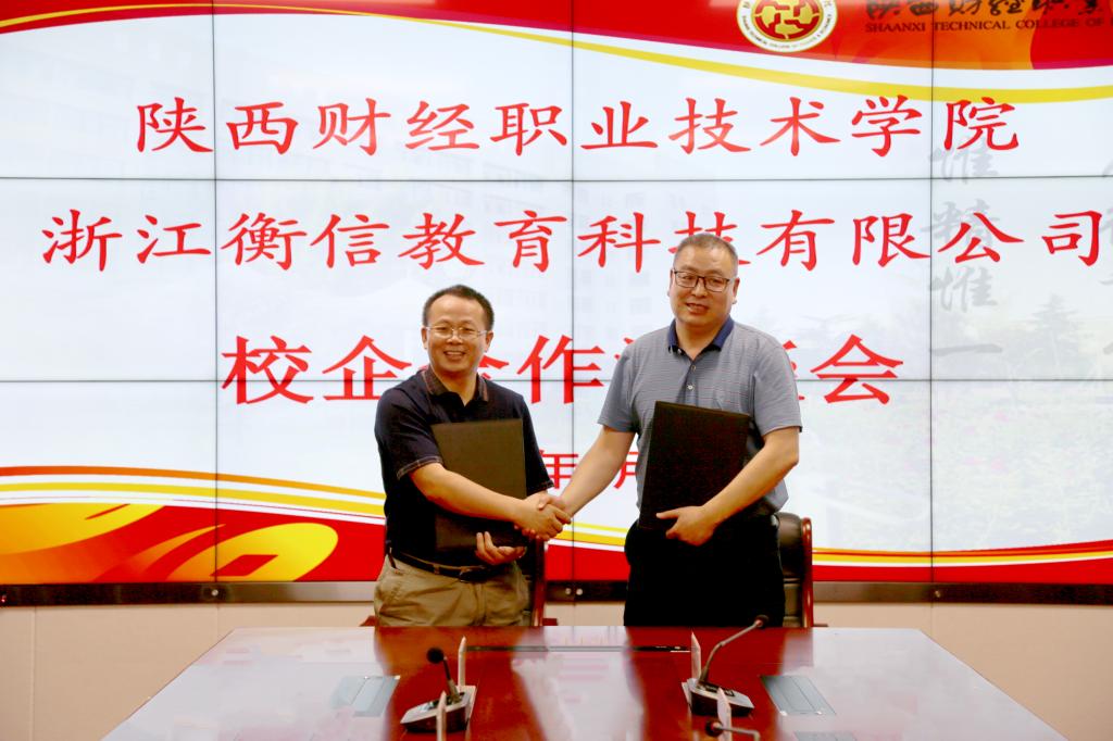 之后,程书强院长代表学院与浙江衡信教育科技有限公司总经理李高齐签订校企合作框架协议。下一步双方将统筹、整合教学资源,紧盯前端产业发展需求,厚集前沿技术成果,在联合教育资源方面加强合作,抓紧起草、落实落细具体可行的方案,并将具体项目落实到团队,争取早日取得扎扎实实的合作成效。