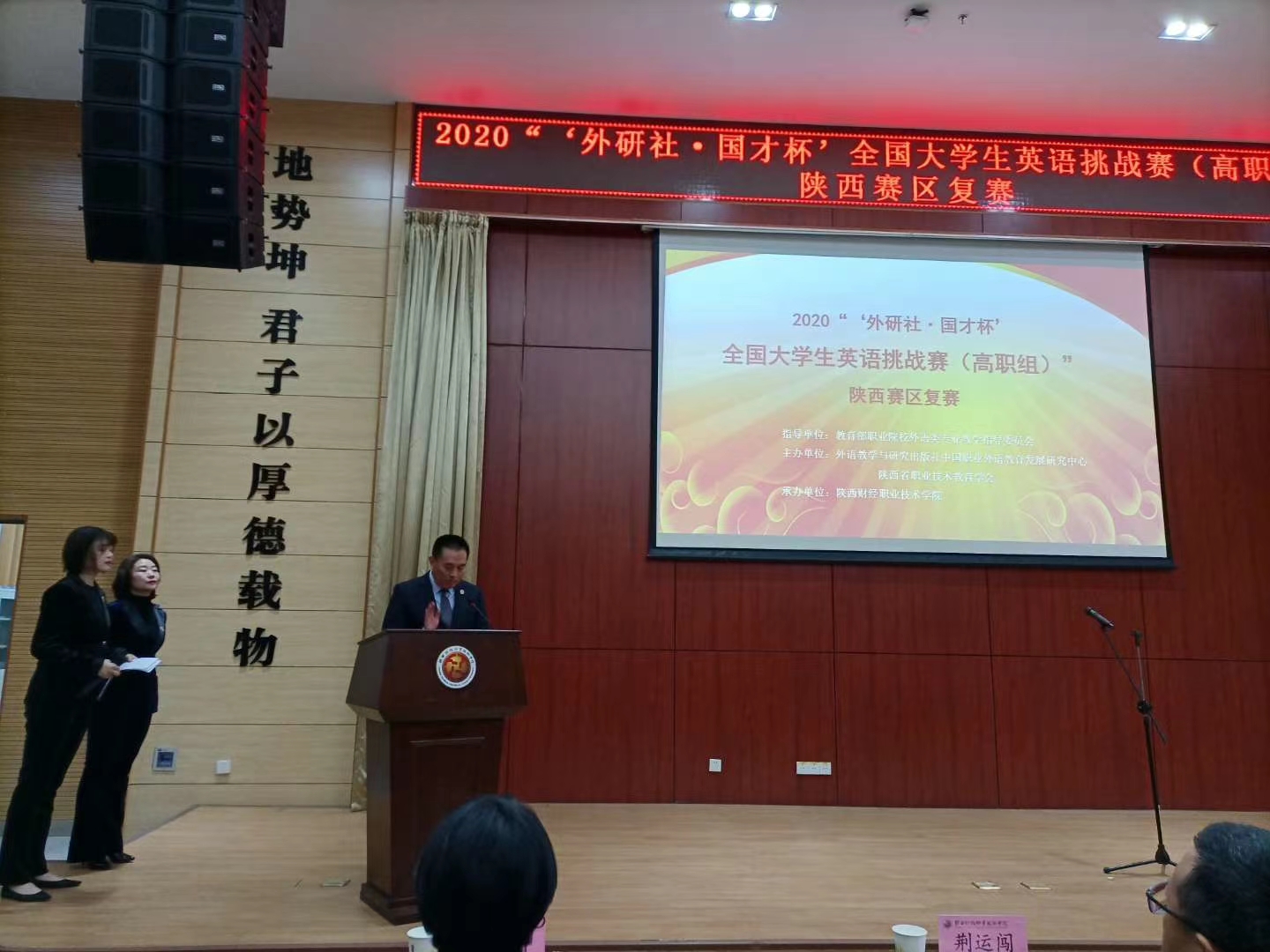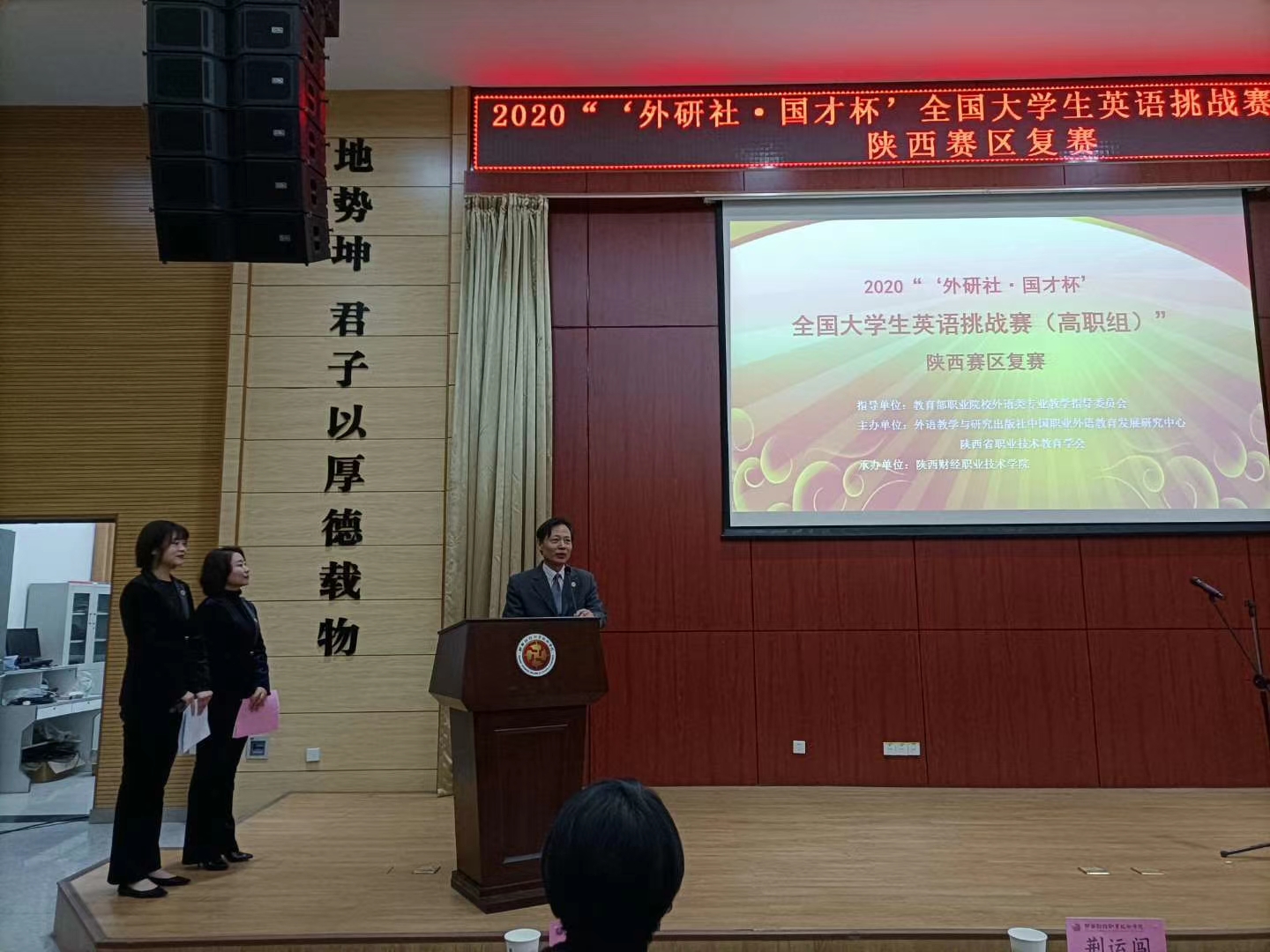 11月1日,阴云散去,秋光明媚,2020“外研社·国才杯”全国大学生英语挑战赛(高职组)陕西省赛区复赛在我院隆重举行。大赛由陕西省职教协会、外语教学研究出版社主办,我院承办。参加写作比赛的有28所学校,61名参赛学生;参加演讲比赛的有26所学校,26名学生。参赛选手加上指导教师和领队总共178人,创历届参赛学校最多,参赛选手最多。
