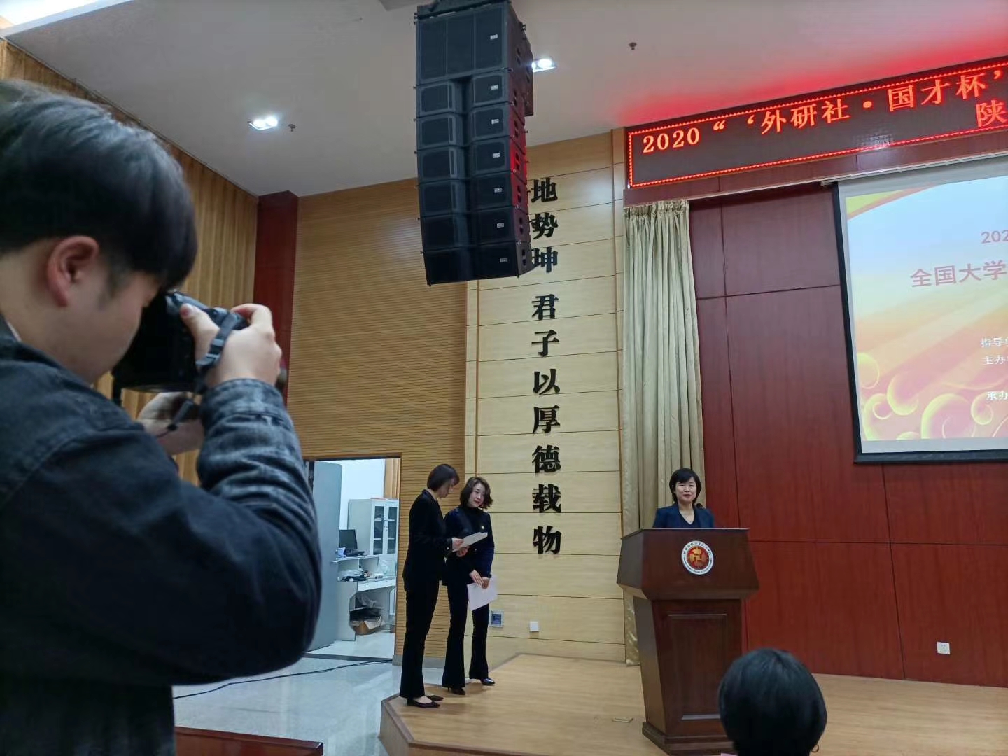 比赛结束后,我院人文艺术学院院长贺兴文致闭幕词。并与人文艺术学院执行院长崔斗、副院长操龙升、外语教学与研究出版社西北大区信息中心经理陈颖以及各位专家分别为获奖选手和优秀指导老师颁奖。