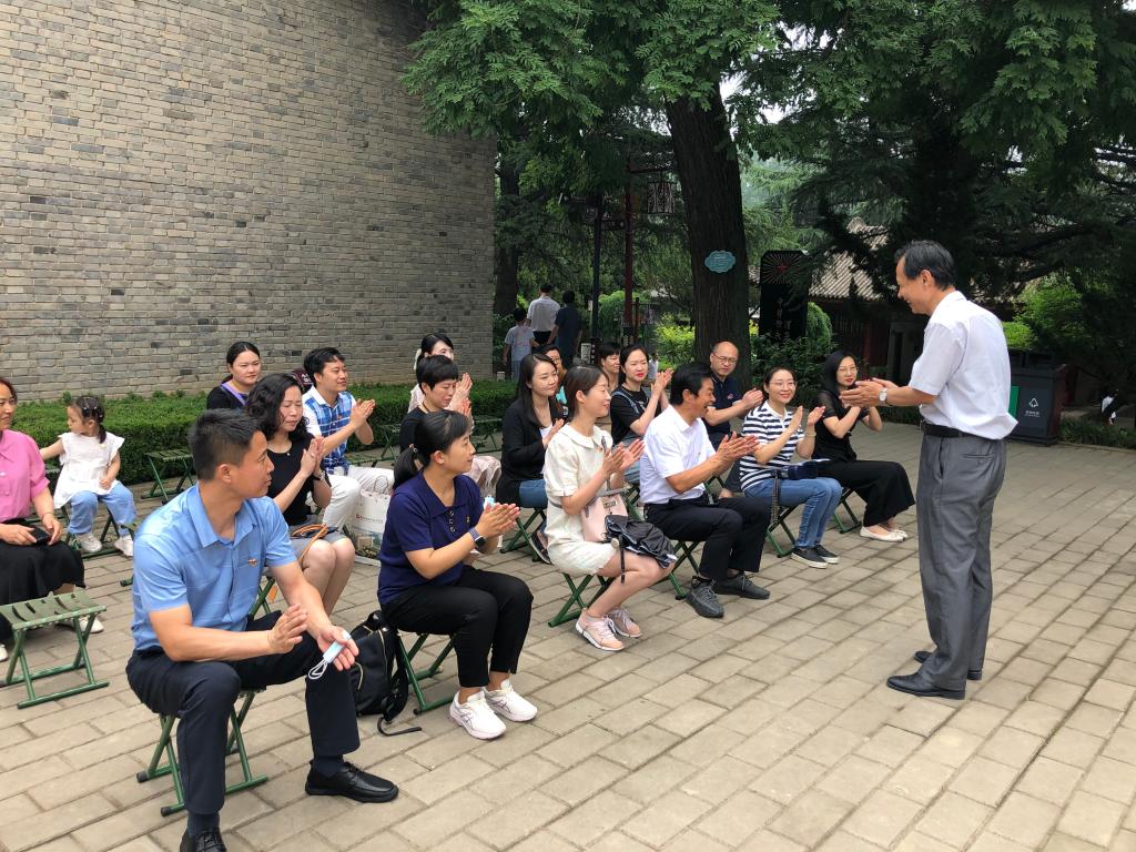 在渭华起义旧址的大槐树前,人文艺术学院执行院长、党支部书记崔斗还现场为全体党员上了一节党课,他说:”渭华起义的先烈们敢为人先、不怕牺牲的革命精神,是留给今天的我们宝贵精神财富,在未来的工作中,我将在学习中不断坚定理想信念,奋进前行!”