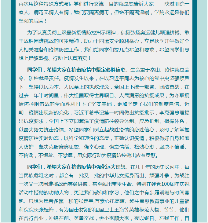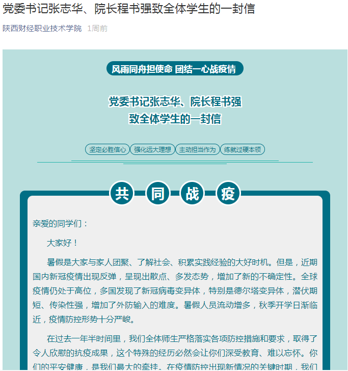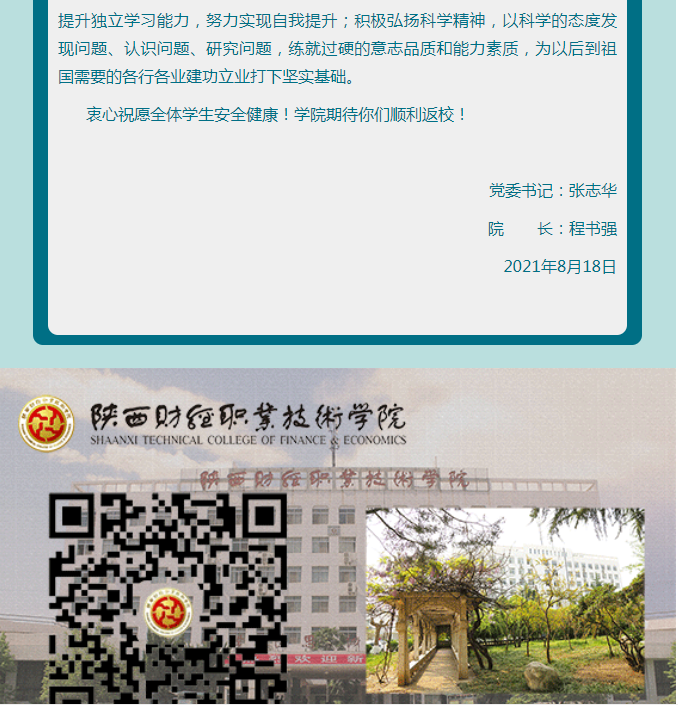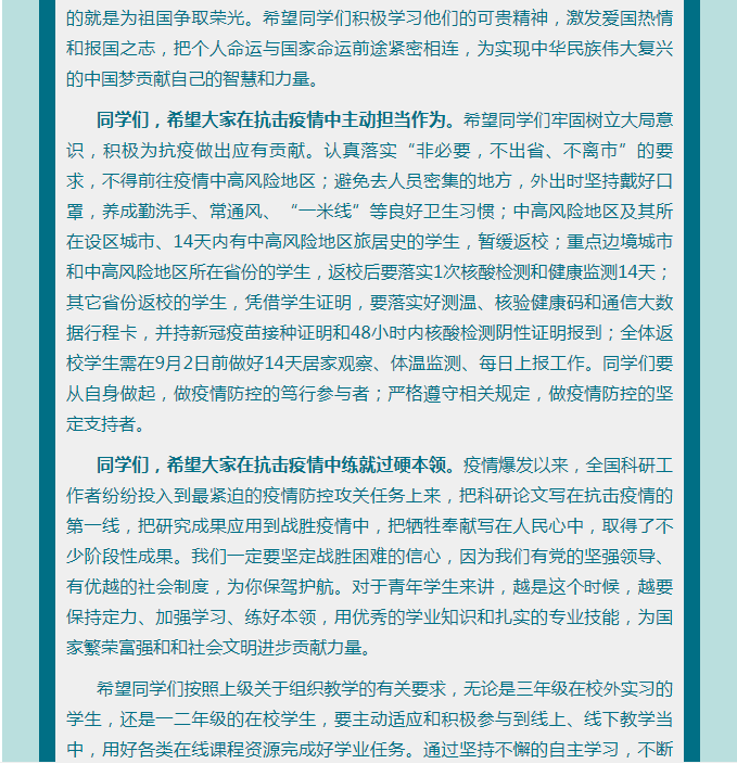 党委书记张志华、院长程书强致全体学生的一封信