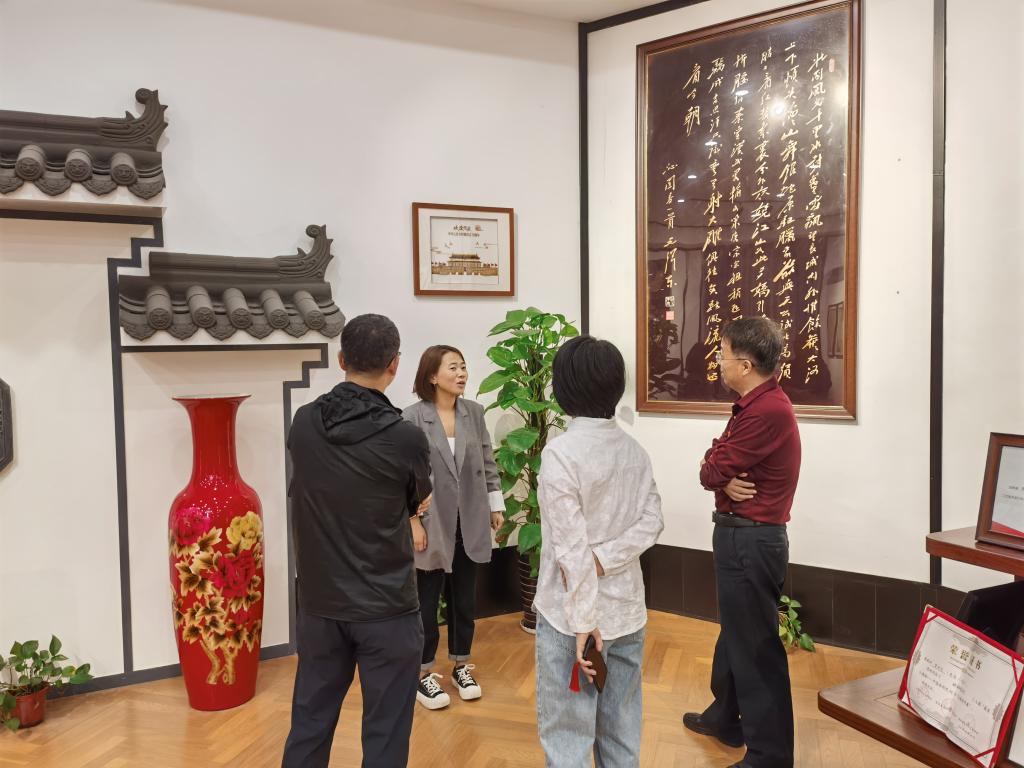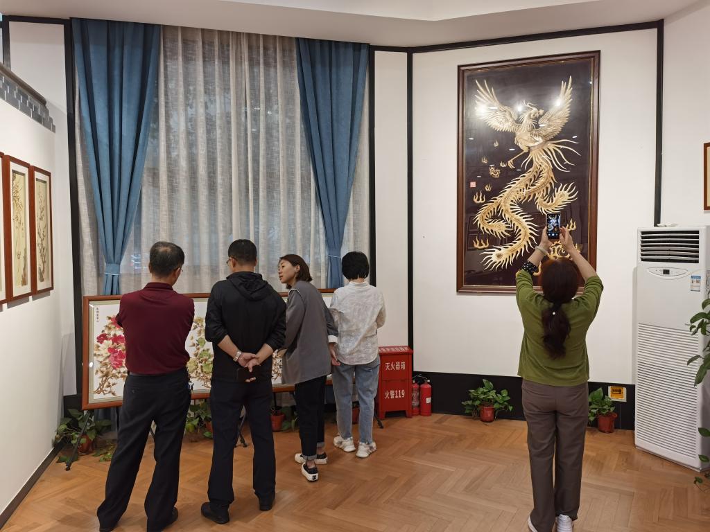 最后,大家饶有兴致地参观了贺兴文大师工作室,大师工作室助理袁玉华耐心而仔细地讲解了麦秆画的起源、制作流程、产品分类、社会赞誉,特别阐述了麦秆画作品所弘扬的中国传统文化和孝道文化,使客人大开眼界。