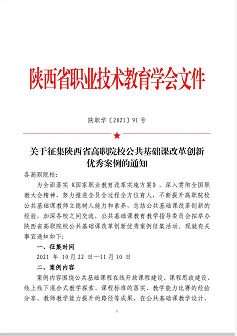 为全面落实《国家职业教育改革实施方案》,深入贯彻全国职教大会精神,努力推进全员全过程全方位育人,不断提升高职院校公共基础课教师立德树人能力和素养,总结公共基础课改革创新的经验,我院教师魏兰妤、郝金参与公共基础课教育教学指导委员会举办的陕西省高职院校公共基础课改革创新优秀案例征集,加深了各校之间交流学习。