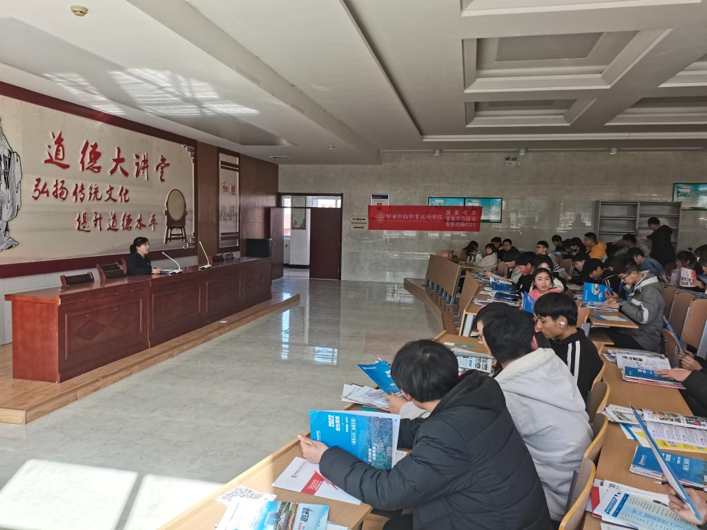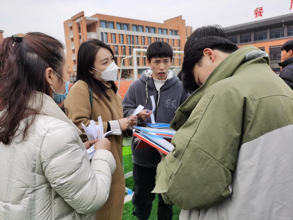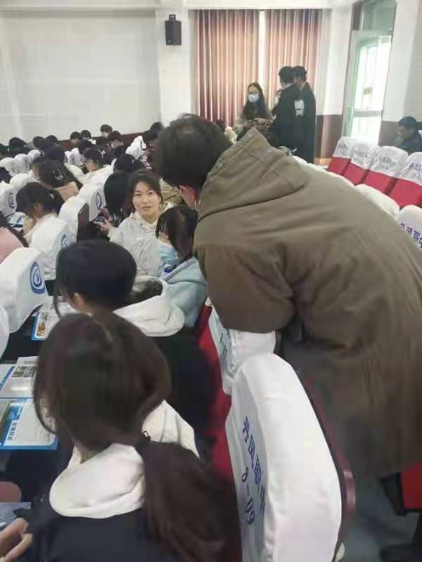 2月28日早上7点,丹凤招生组王爱军、李平、刘丹柏、张楠、刘潇然再次前往丹凤县职教中心,参加该校组织的集中宣讲活动。宣讲现场气氛热烈,互动积极,学生踊跃入群咨询。本次宣讲有效巩固了前期进班宣讲成果,扩大了潜在考生数量。后续我们将着重维护好各方关系,建立密切联系,力争不漏一个,颗粒归仓。