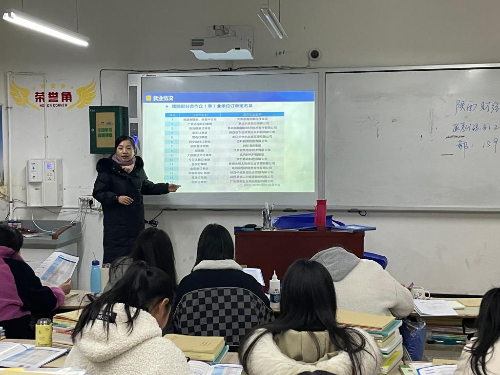 2月24日晚,山阳招生组操龙升,叶雪,郝依宁,魏兰妤,王炅及大数据校企合作老师,进山阳职教中心八个班宣讲,建立微信群,登记学生联系方式,与学生积极沟通,效果良好。