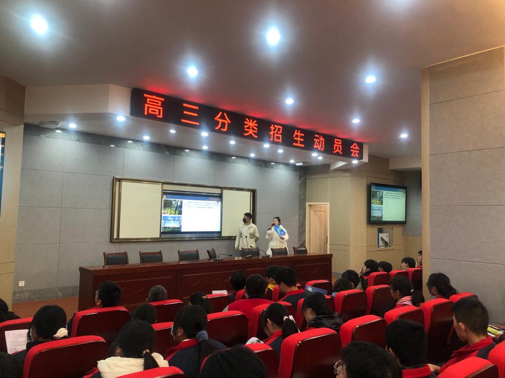 2月26日下午,经多方协调,山阳招生组操龙升,叶雪,郝依宁,空乘,大数据企业老师,在山阳三中进校对12个班集中宣讲,提前联系,与班主任建群,集中宣讲效果良好。