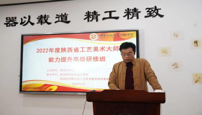 11月22日上午,由陕西经济联合会主办、陕西财经职业技术学院承办的陕西省工艺美术大师线上能力提升培训班隆重开班。
