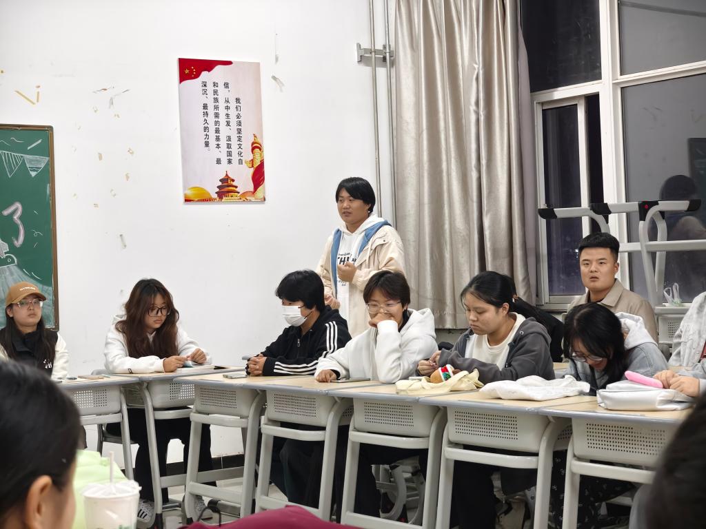 班会伊始,钱涌宁老师对24级融媒体技术与运营1班的班级成员构成、学情现状等方面进行了介绍。班长张海洋就班委成员在学风建设、活动组织等方面的成果与不足进行了汇报。