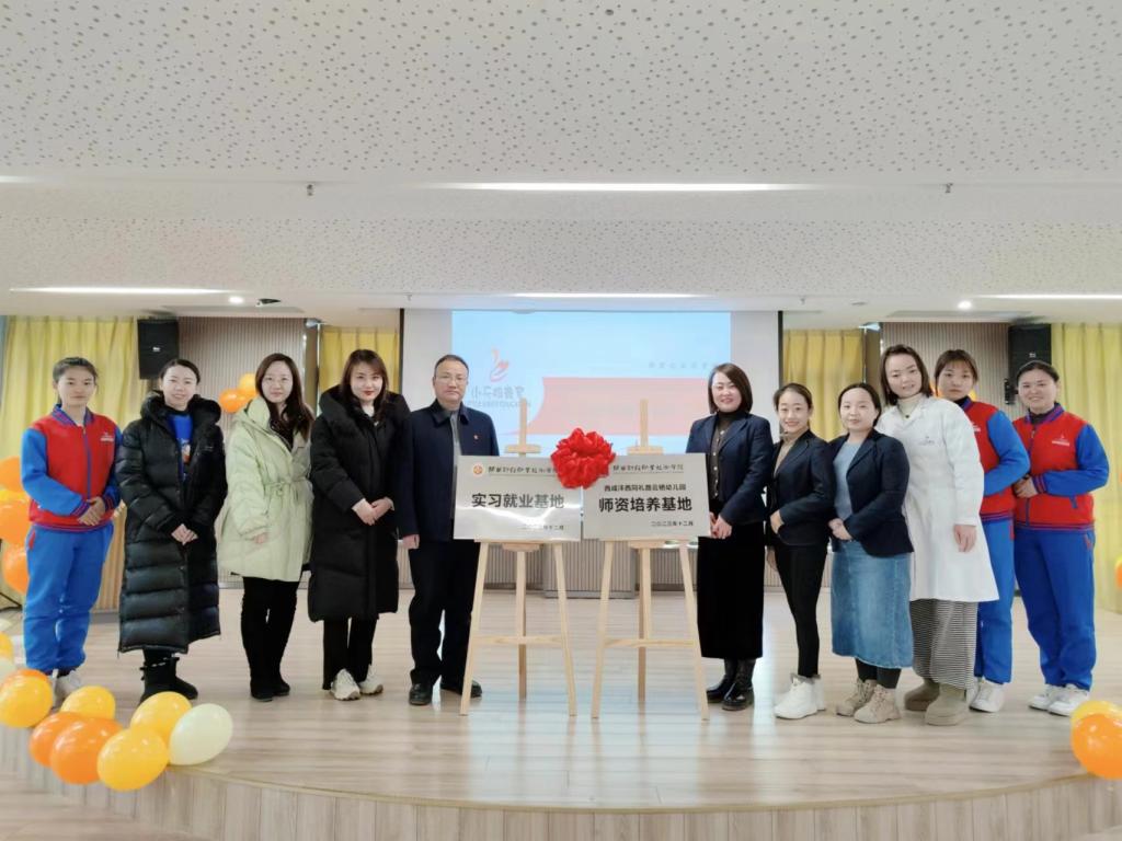 访企拓岗促就业,校企合作共育人。为持续拓展学生见习研习、实习实践平台,精准对接幼儿园所岗位能力需求,进一步为学生创造更多技能培养和就业选择的机会, 12月25日,人文艺术学院党总支部书记兼副院长宋波,教育系系主任郭姗姗,教育系骨干教师杨梦涵、耶蒙一行四人,赴小天鹅教育集团沣西新城云栖幼儿园开展访企拓岗促就业工作,双方在座谈会期间举行了实习就业基地签约暨授牌仪式。
