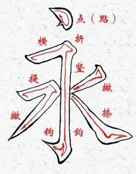 写字这件事情,说起来好像很简单。但是它牵扯到的大脑工程非常复杂。让我们用练习书法的时候最常见的“永”字来举例——首先,大脑要调用视觉系统,识别一个个字母或汉字的正字法表征,也就是“永”的整体形状。