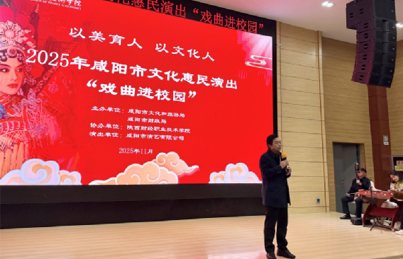 活动伊始,贺兴文致辞,他对杨小军团长领衔的艺术家团队及咸阳市演艺有限公司表示欢迎与感谢,同时指出戏曲是中华优秀传统文化瑰宝,此次活动能让师生近距离感受秦腔魅力、在美育中厚植文化自信。